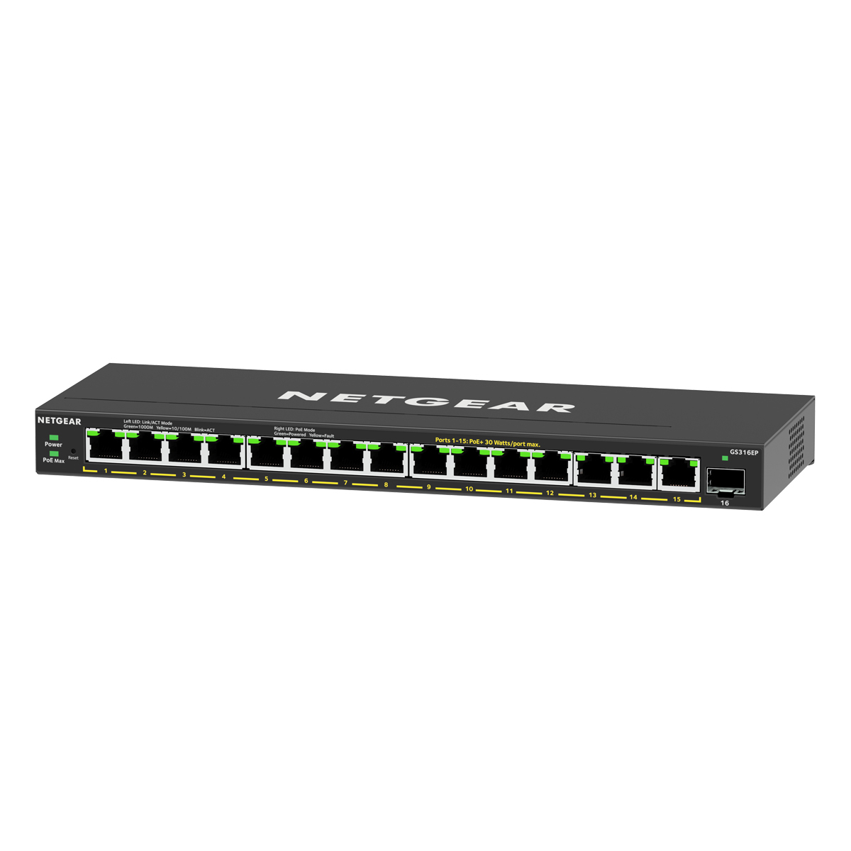 (GS316EP) Einführung des NETGEAR® 16-Port-Gigabit-Ethernet-PoE+ Plus-Switches (GS316EP) mit 15 PoE+ Ports und einem PoE-Gesamtbudget von 180 W für die Stromversorgung von PoE-Anwendungen wie VoIP-Telefonen, IP-Überwachungskameras, drahtlosen Access Points und mehr. GS316EP enthält grundlegende und erweiterte Netzwerkverwaltungsfunktionen, um die Leistung von Unternehmensnetzwerken zu optimieren. Das Management ist auch verbraucher- und geschäftsfreundlich über den benutzerfreundlichen Webbrowser und die reaktionsschnelle Benutzeroberfläche für das mobile Management. Zu den grundlegenden Verwaltungsfunktionen gehören VLANs, QoS und IGMP-Snooping.