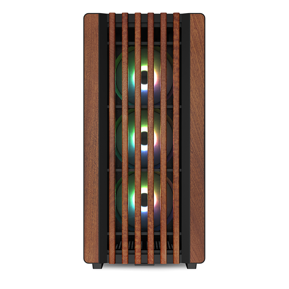 Im Rebel C70M RGB sind hinter der eleganten Holzfront bereits drei 120-Millimeter-PWM-Lüfter mit adressierbarer RGB-Beleuchtung vorinstalliert. Ein weiterer, baugleicher Lüfter sorgt auf der Gehäuserückseite für eine Abfuhr der aufgeheizten Luft. Insgesamt können maximal elf 120-Millimeter-Lüfter eingebaut werden, zusätzlich zu den vorinstallierten drei weitere neben und einer hinter dem Mainboardtray sowie drei in der Gehäuseoberseite. Für ein möglichst sauberes Inneres befindet sich ein herausnehmbarer, leicht zu reinigender Staubfilter in der Gehäuseunterseite.